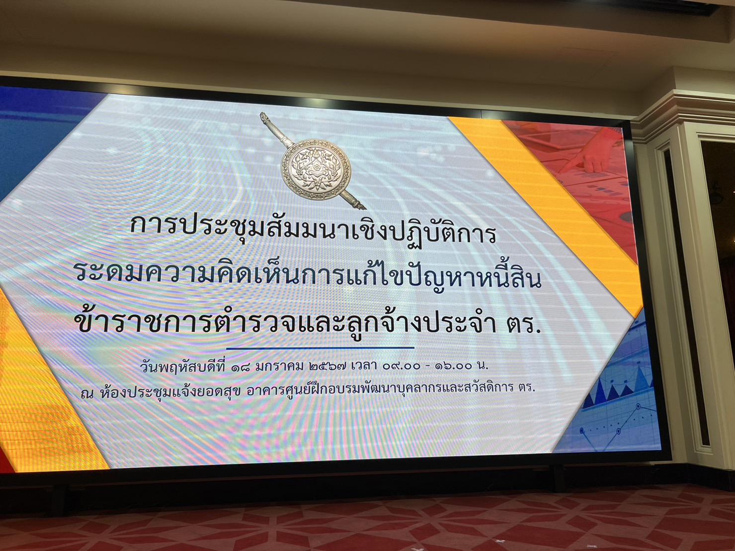 วันพฤหัสบดี ที่ 18 มกราคม พ.ศ.2567 เวลา 09.00-16.00 น. ร.ต.ต.จิตติ ชัยบุรินทร์ ประธานกรรมการสหกรณ์ออมทรัพย์ตำรวจจังหวัดชายแดนภาคใต้ จำกัด ร่วมประชุมสัมนาเชิงปฏิบัติการ ระดมความคิดเห็นการแก้ไขปัญหาหนี้สินข้าราชการตำรวจและลูกจ้างประจำ ตร. ณ ห้องประชุมแจ้งยอดสุข อาคารศูนย์ฝึกอบรมพัฒนาบุคลากรและสวัสดิการ ตร. กรุงเทพมหานคร โดยมี พล.ต.อ.สราวุฒิ การพาณิช รองผู้บัญชาการตำรวจแห่งชาติ เป็นประธาน